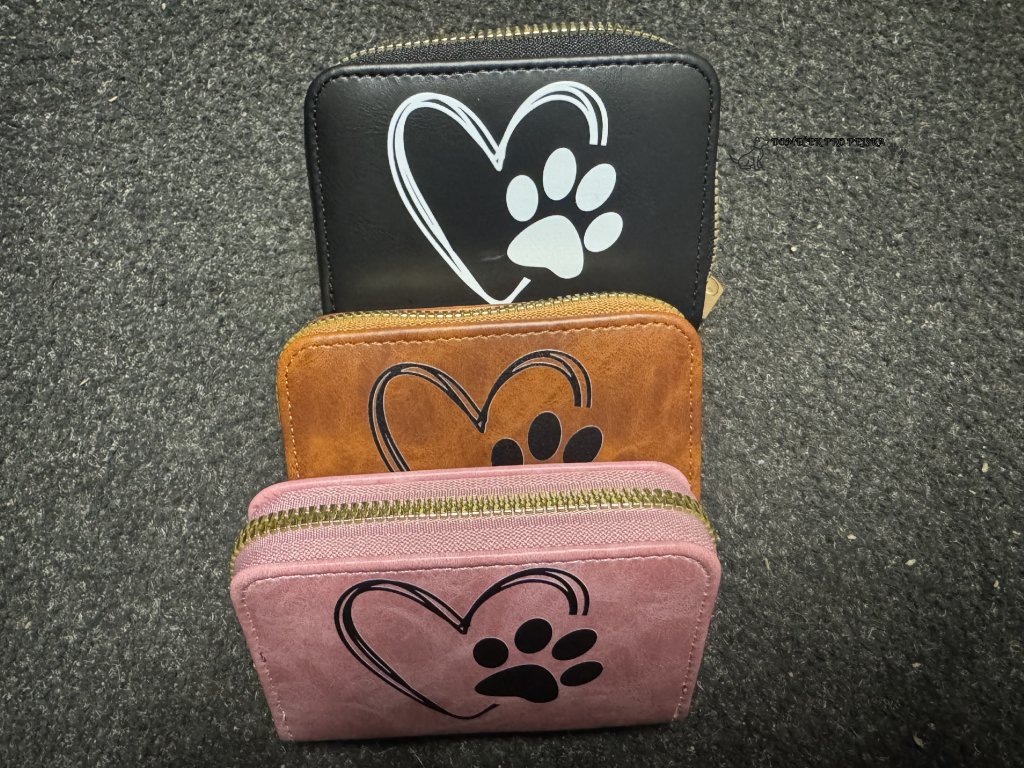 Hezká stylová peněženka na karty se vzorem srdce s tlapičkou .